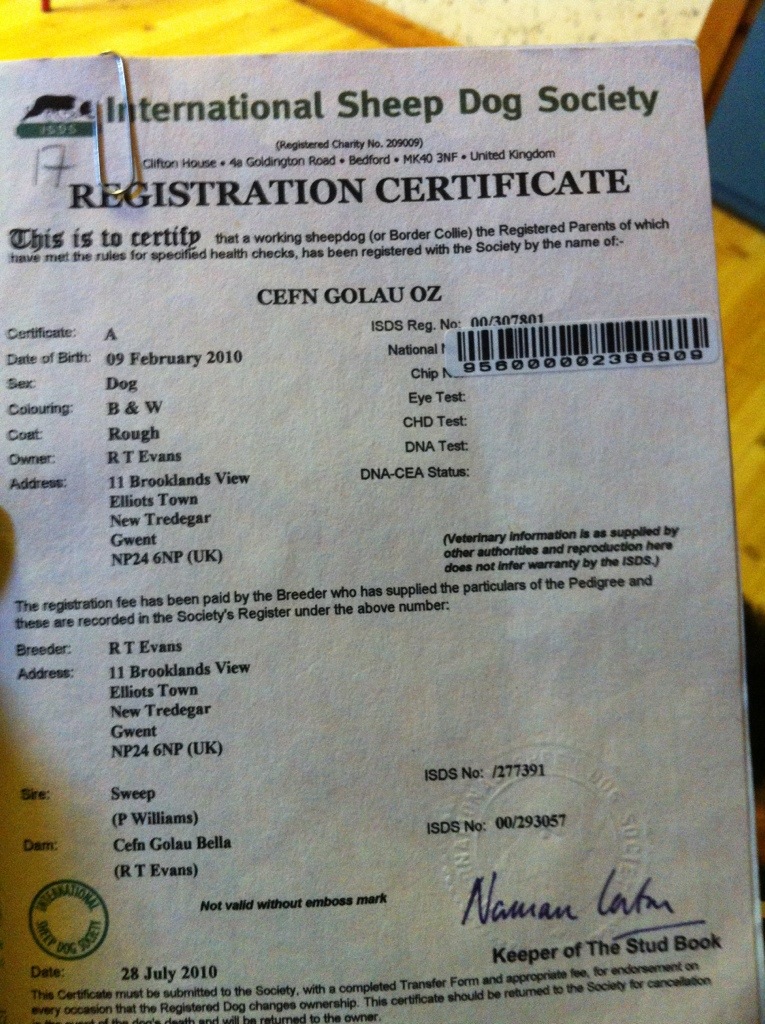 Cefn Golau Oz var på HD-röntgen och ögonspegling förra veckan:) Oz har HD A och Ögon UA:)