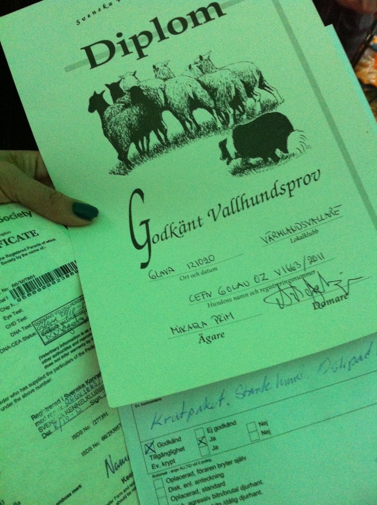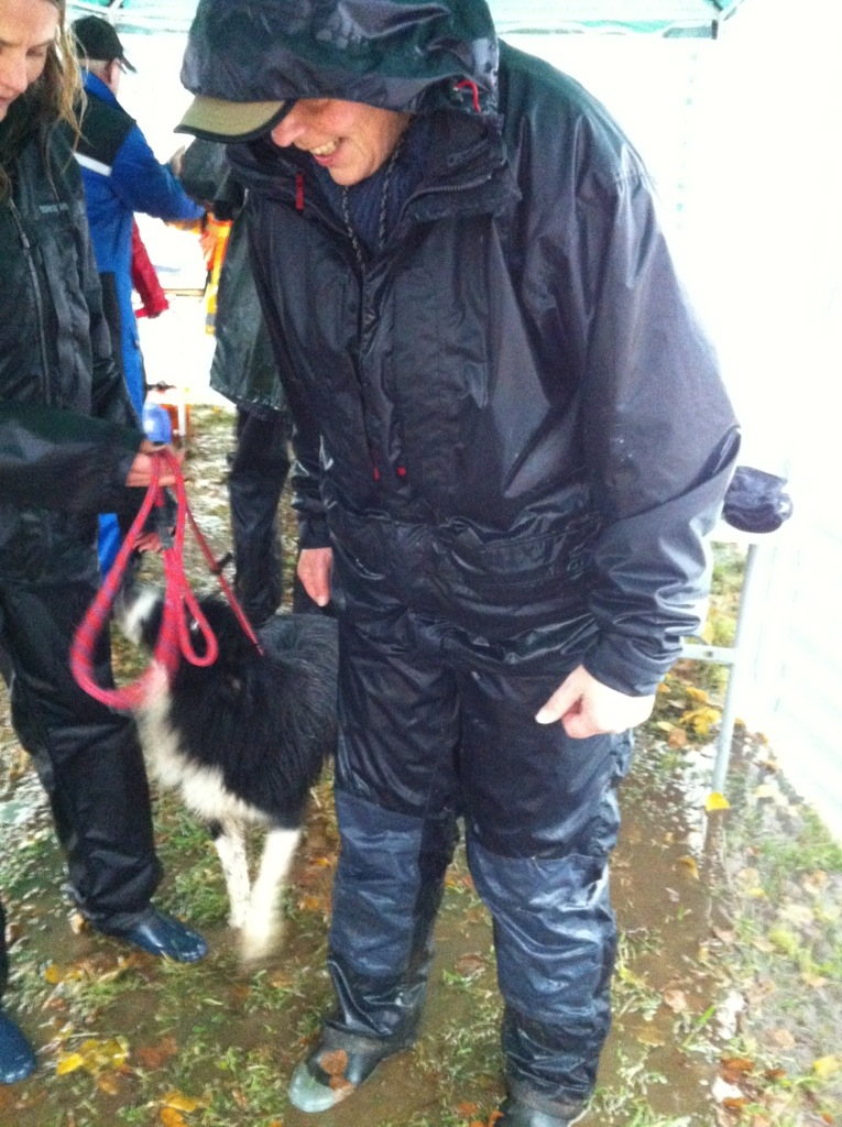 1. Tur att han kommer från Wales, han lär vara van vid mycket regn 🙂 Grattis till godkänt VP. Kommer att bli finfina valpar, så spännande….