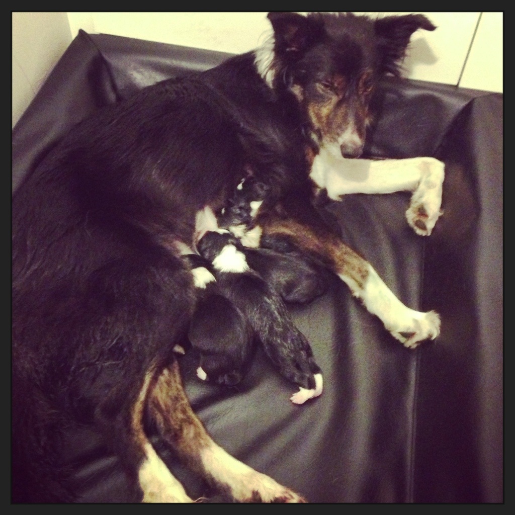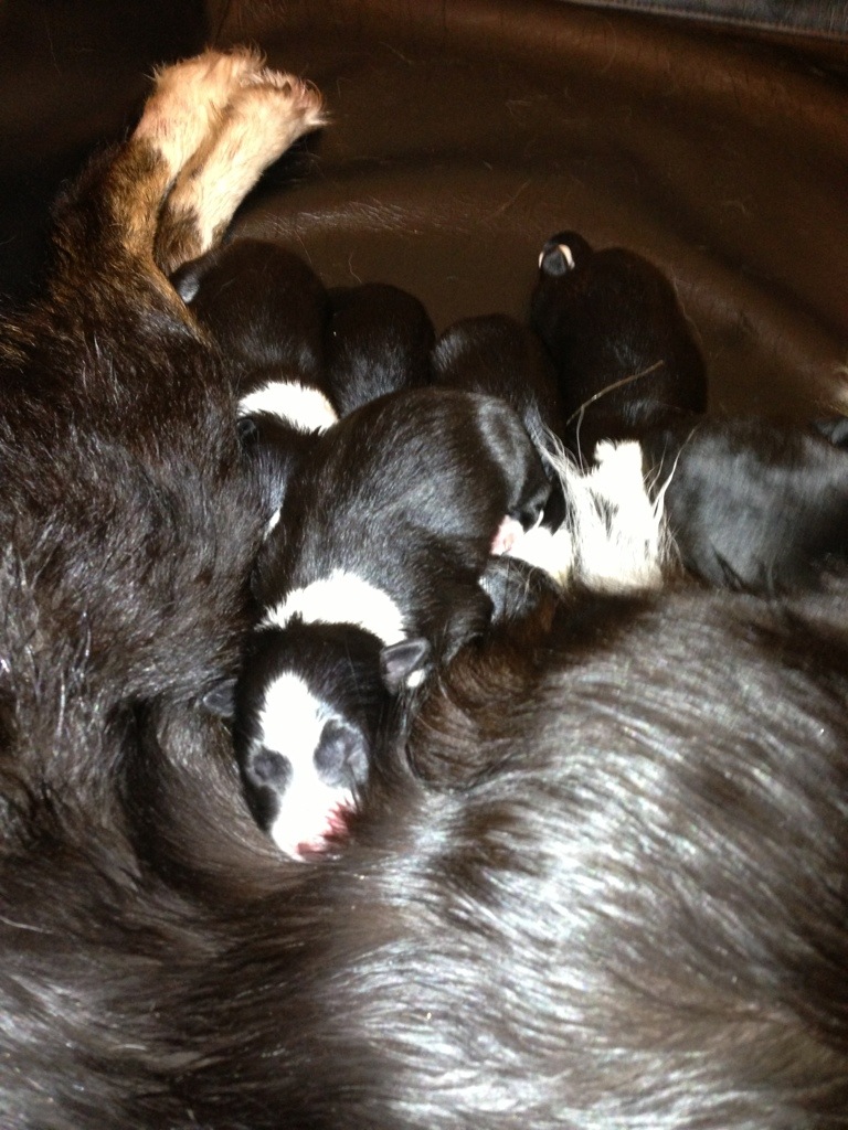 Idag föddes 3 hanar och 4 tikar efter Kylie och min Oz. Extra alldeles extra roligt då det är Oz första kull med valpar som kommit till världen:)