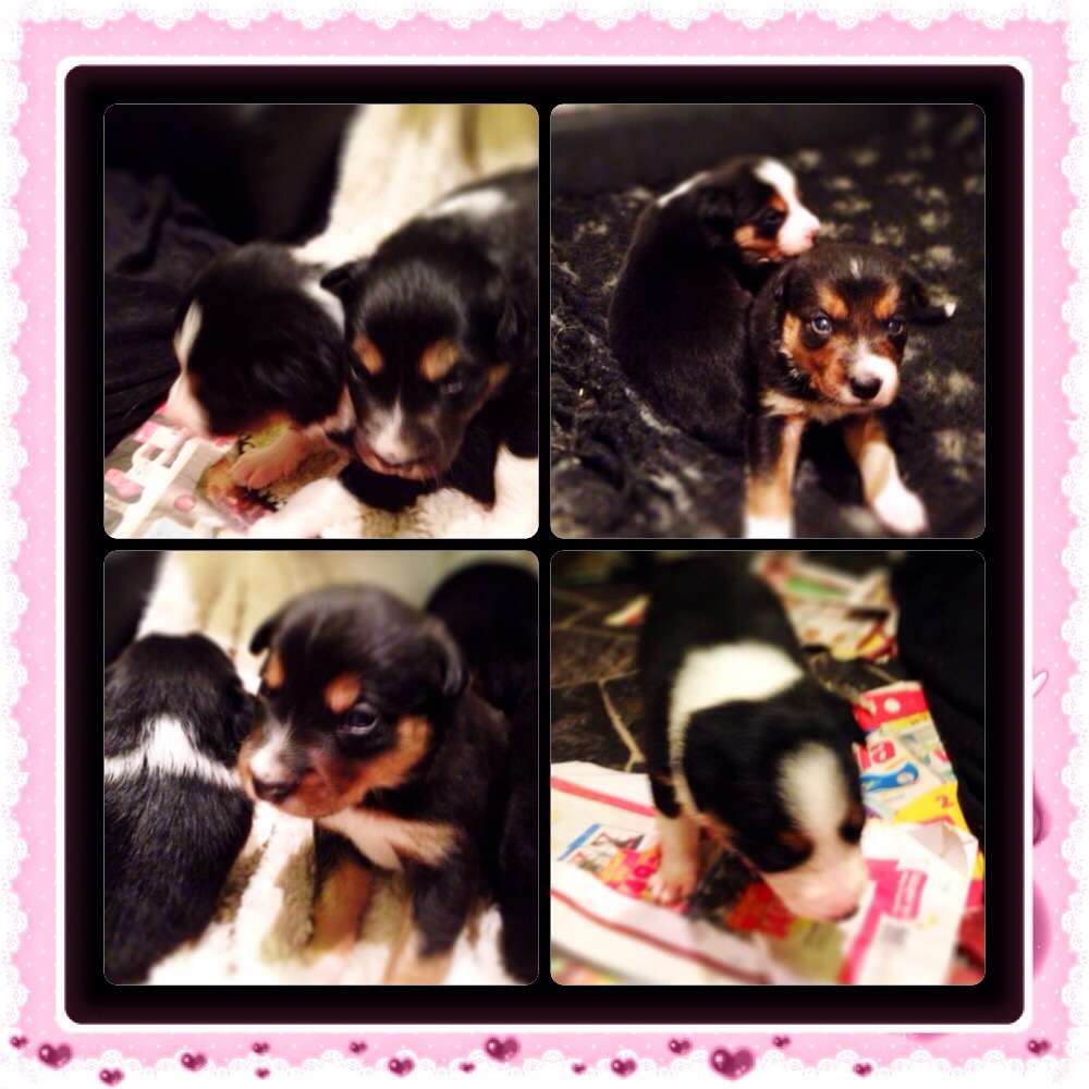 De är mkt framåt och orädda. Härliga svansviftningar och kontaktsökande. De är snart 3 veckor.