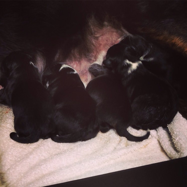 Helt otroligt!! Båda tikarna börja valpa samtidigt. Imza börja en timme före Kylie☺️. Allt har gått som på räls – vilka tikar och deras sista kullar dessutom så det känns extra speciellt.