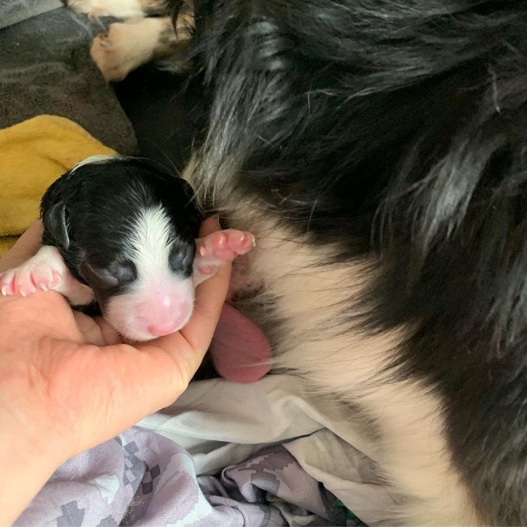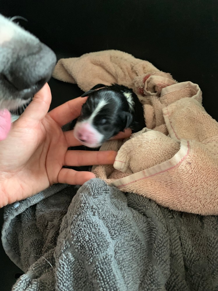 Chloe skötte valpningen galant. På 1,5h var 5 valpar ut. Första valpen var en bjässe, 442g! Röntgen hade visat 5 st men jag kände snabbt på mig att hon inte var klar. Mycket riktigt, det kom en sjätte. En hane upp och ner på 440g. Minsta vägde 278g. Starka fina valpar och en lugn trygg Chloe med massor av mjölk. Jag hör ända till TV-rummet hur de klunkar mjölk😁. Så det är mätta, rena, tysta fina valpar i lådan❤️. Välkomna till världen fina I-kullen!